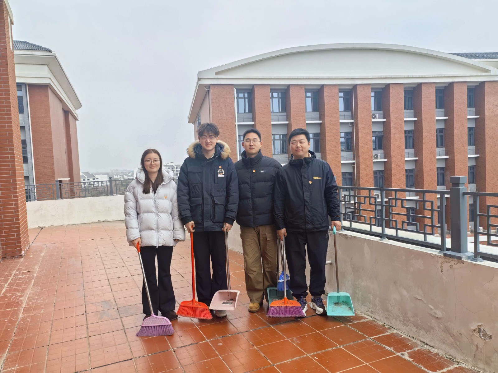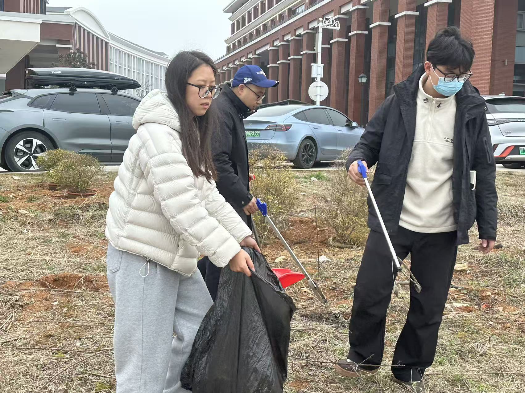 行政第一党支部、行政第二党支部组织党员同志接力,对校园公共区域进行清洁,确保校园环境整洁有序;