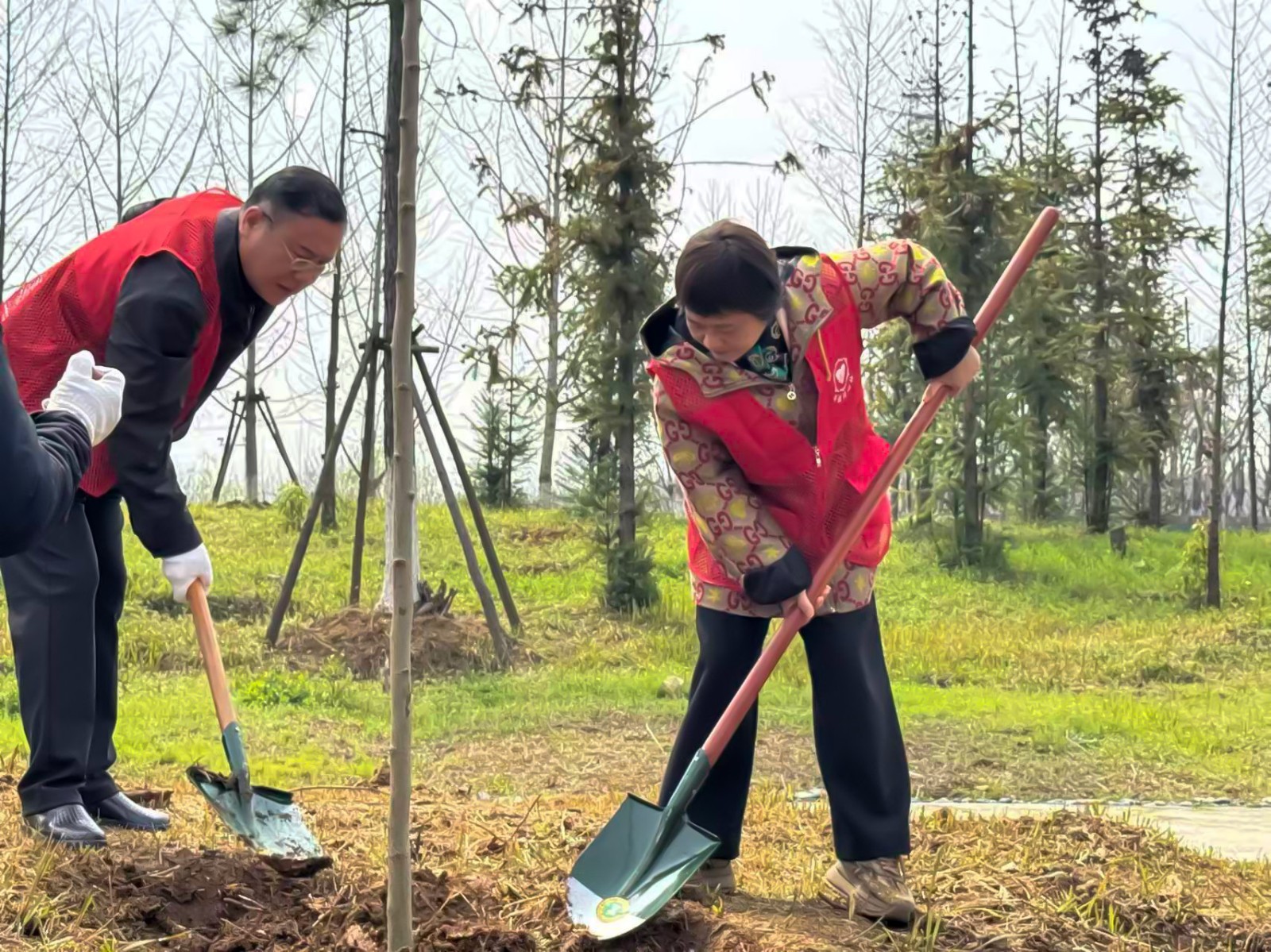 省委统战部副部长江浩发表讲话,他回顾了美珈职院的建校史,他表示,美珈职业学院的建校历程凝聚了各方力量,是职业教育的重要阵地。他强调,此次植树活动既是对孙中山先生诞辰160周年的深切缅怀,也是深入践行习近平生态文明思想、助力美丽中国建设的具体行动。通过共植“同心林”,共同为建设美丽湖北、美丽孝感、美丽校园增绿添彩。