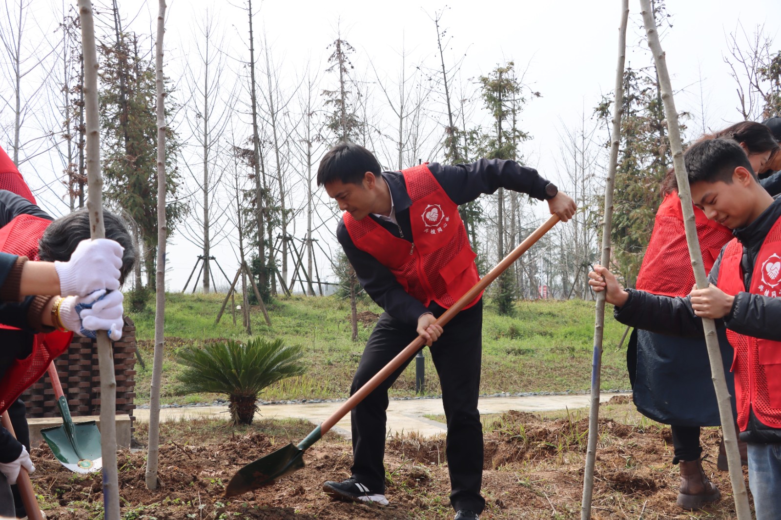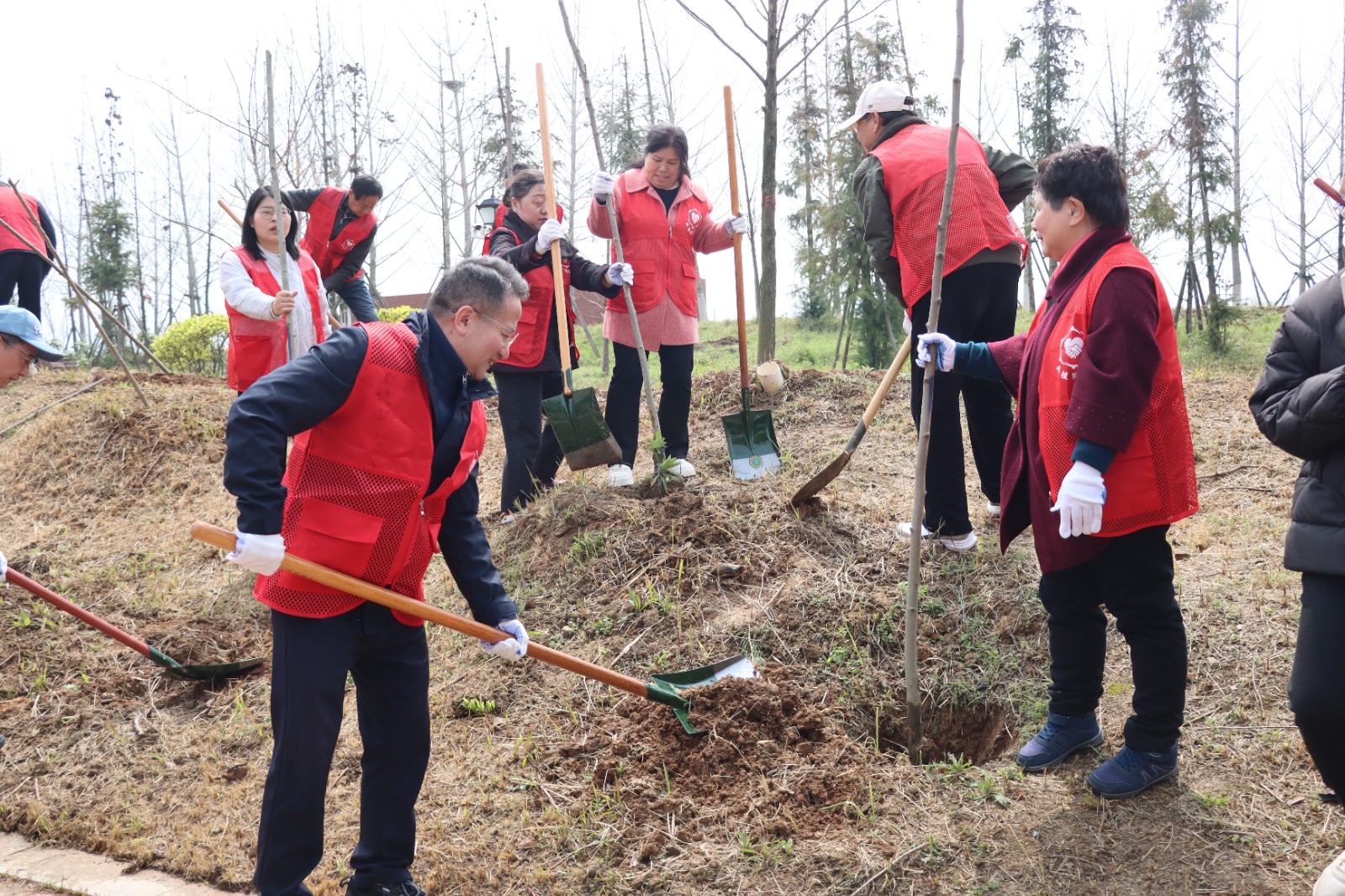 3月23日,湖北省黄埔军校同学会与孝感市委统战部、湖北孝感美珈职业学院联合开展“共植同心林 共绘同心圆”义务植树活动。