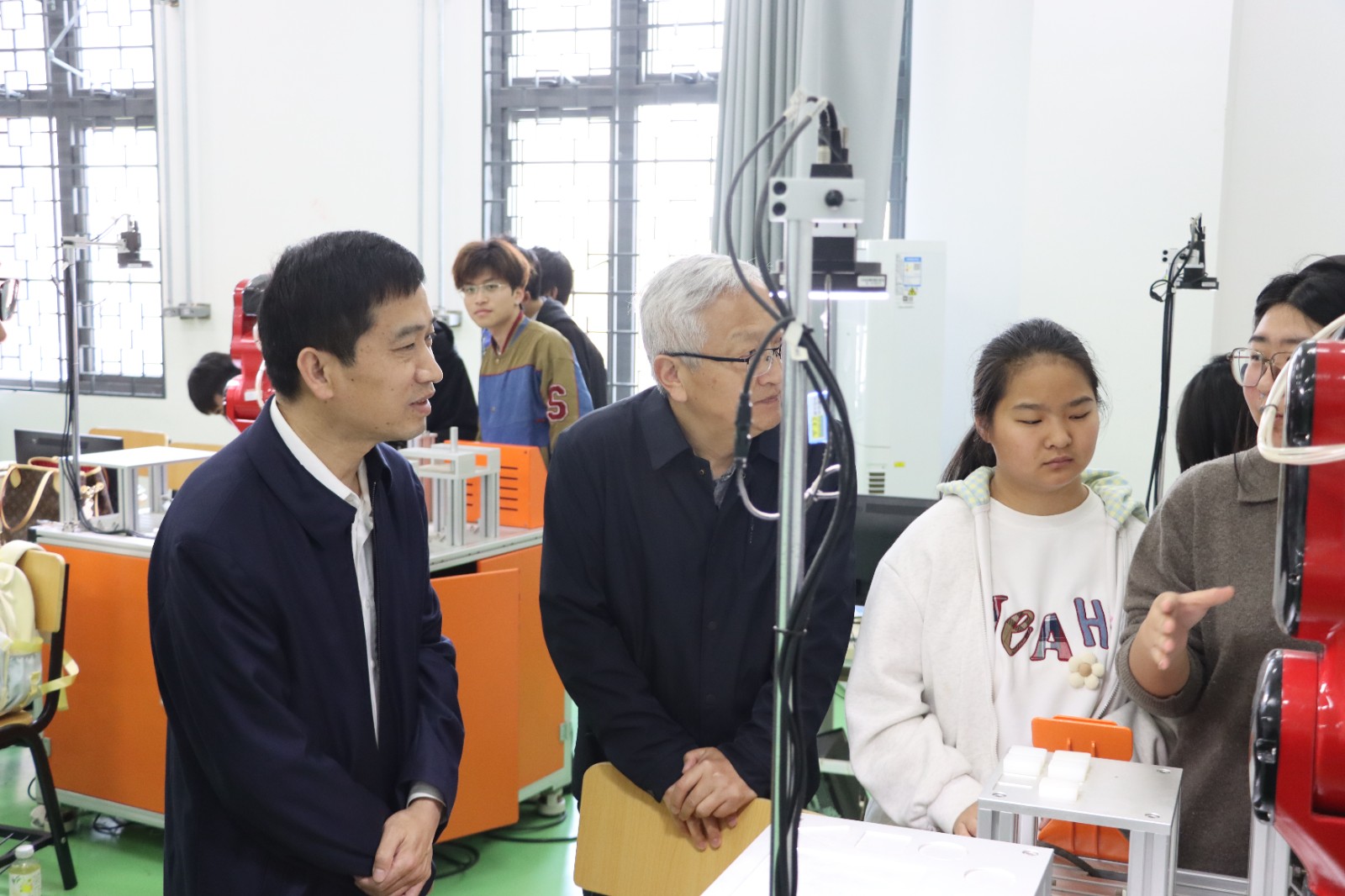 杨盛云一行实地走访了智能制造大楼、信息楼、实训楼等教学场所,沿途听取学校在专业建设、实训教学、产教融合等方面的介绍。杨盛云一行对我校先进的实训条件、紧贴产业需求的专业布局给予充分肯定,不时驻足交流,称赞学校办学定位清晰、实践教学扎实。